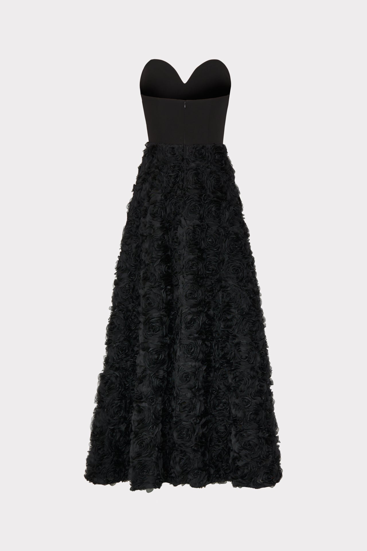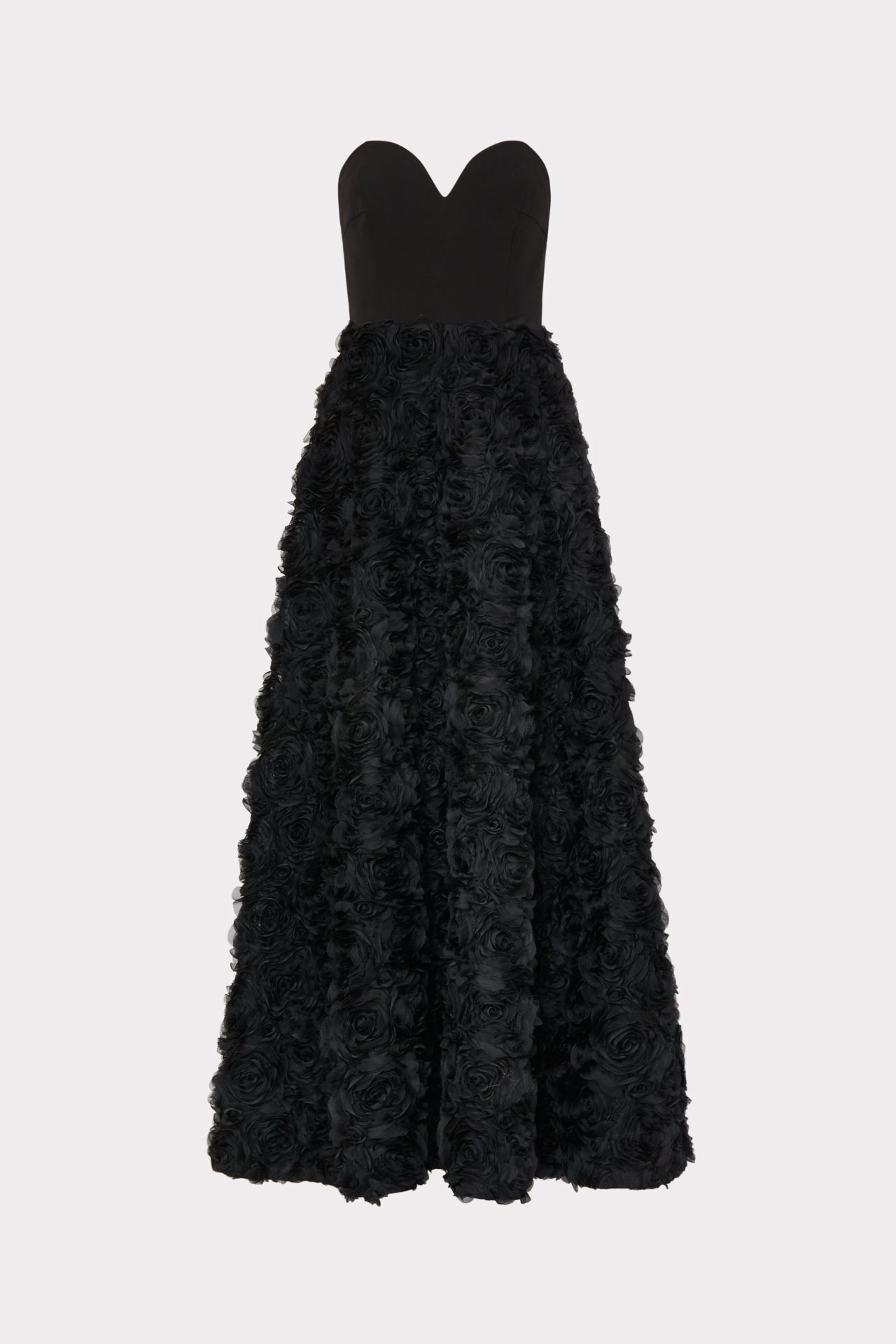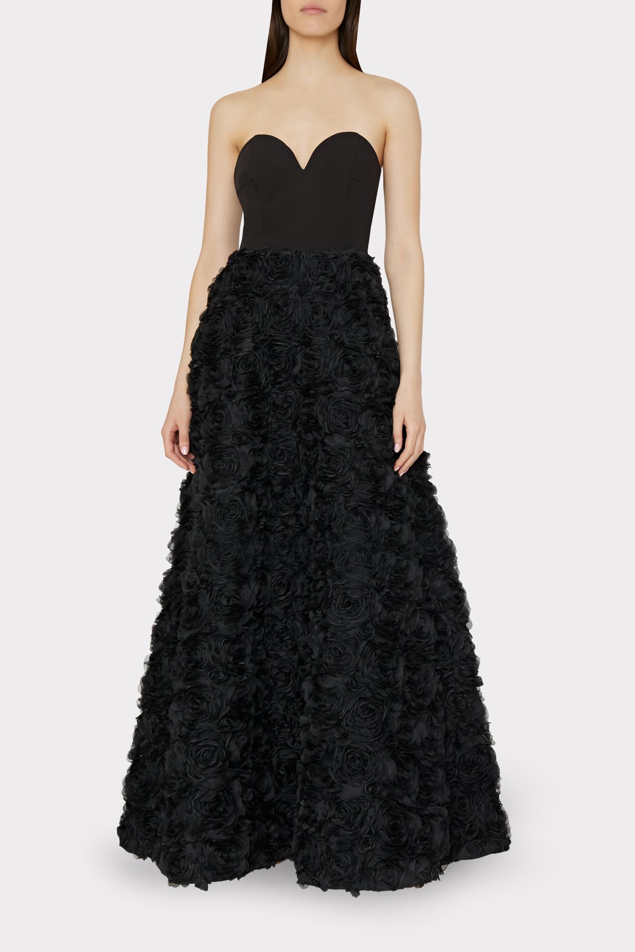 Get ready to go glam in one of MILLY’S original evening gown designs. Designed especially for your biggest MILLY moments, the Roxy is a strapless, sweetheart neckline with 3D mesh roses adorning its full skirt that eventually falls to a floor-sweeping hemline. It’s as showstopping as it is timeless.