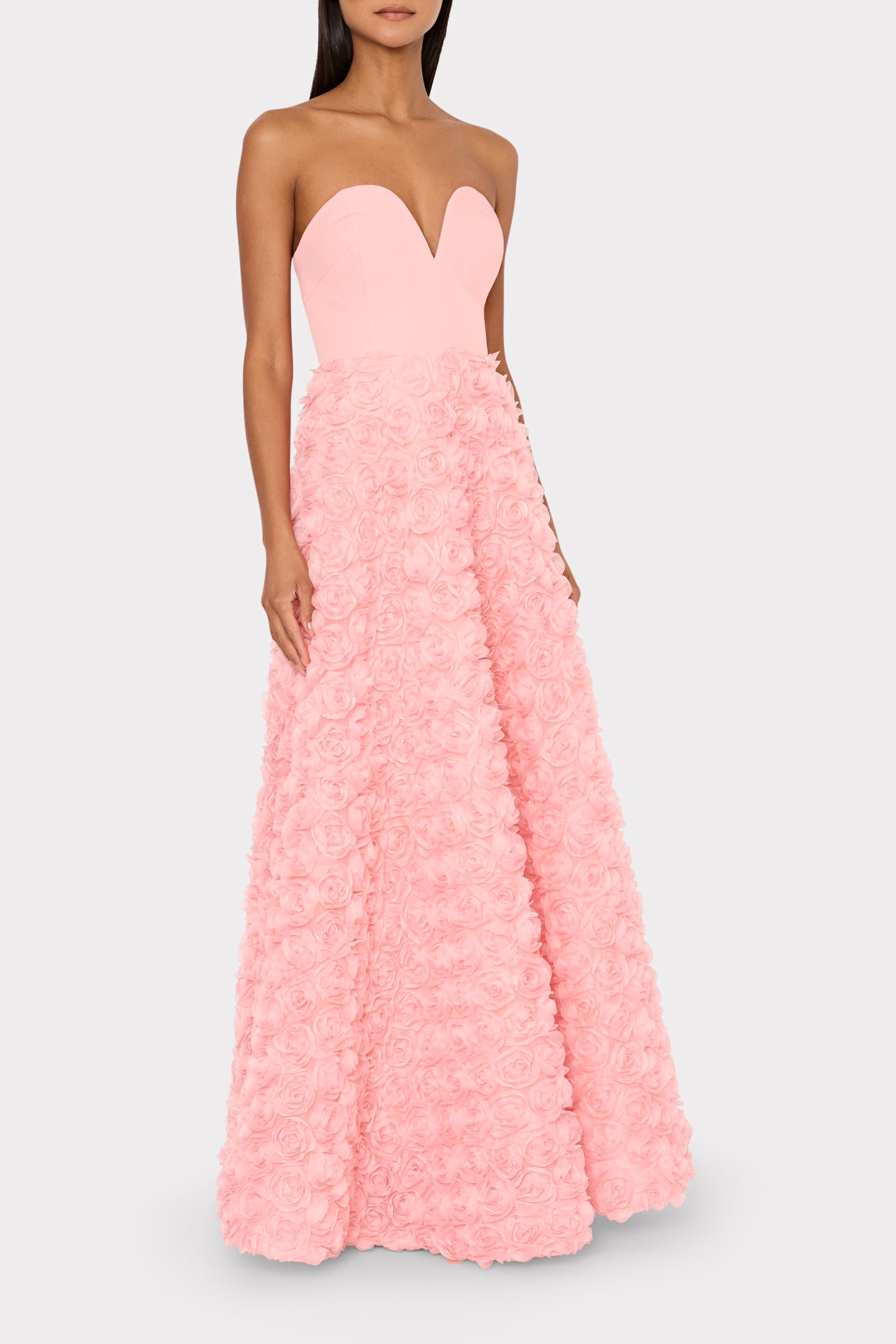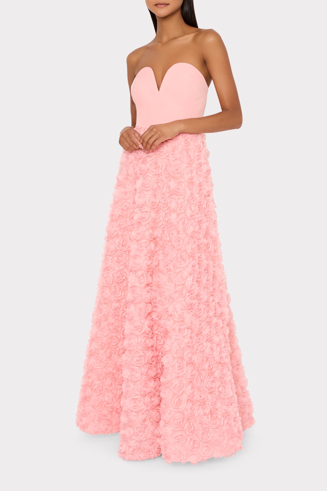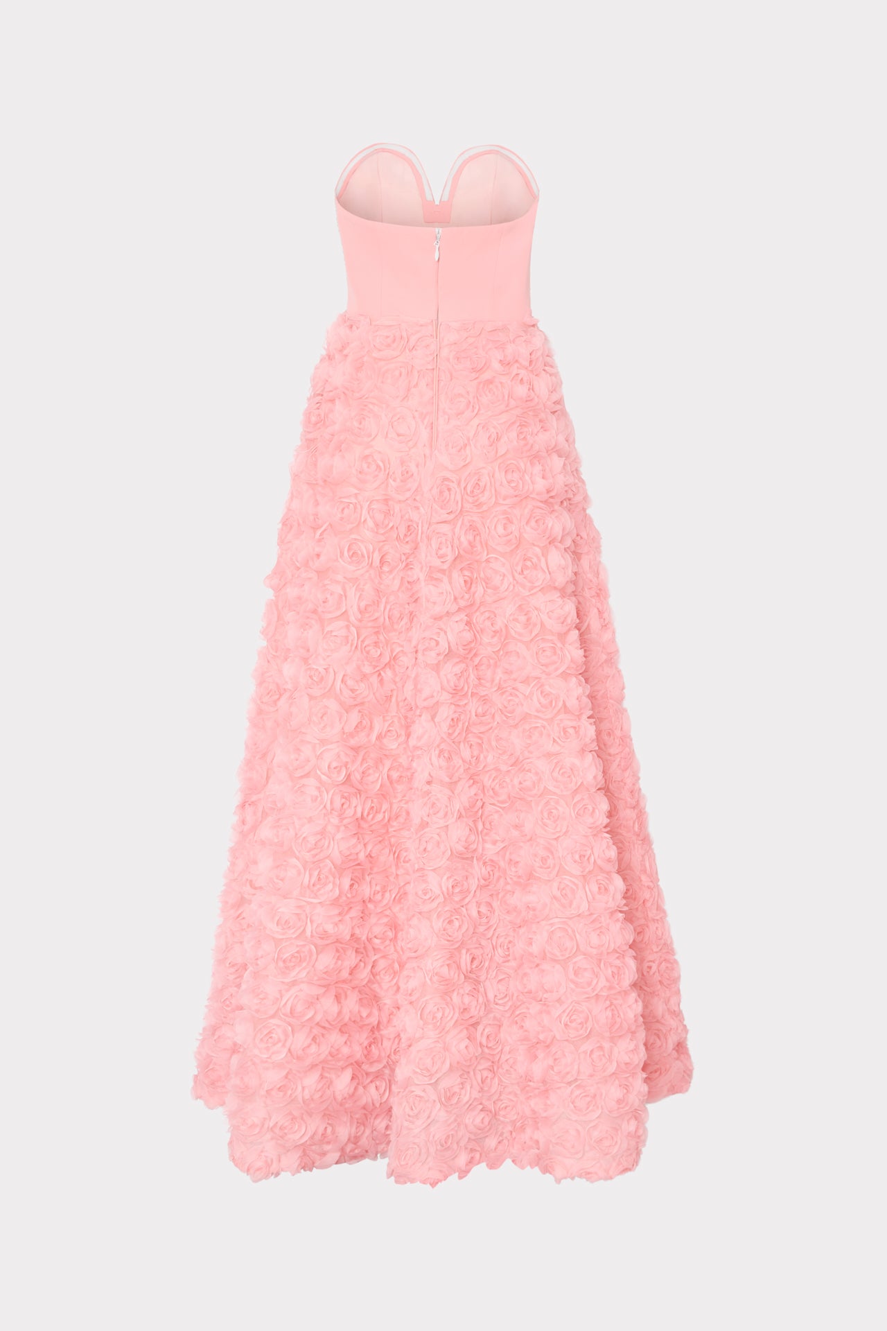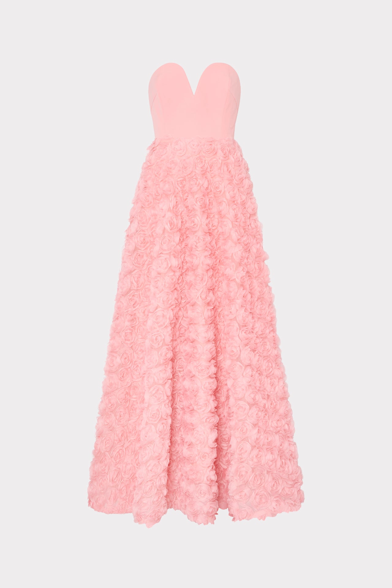 Be the belle of the ball in this dramatic gown, featuring a sweetheart neckline and a-line skirt adorned with elegant 3D mesh roses for an ultra feminine touch. Fully lined for comfort, it includes an elastic support band with a bra hook closure to ensure a secure fit. Embrace the sweet pink color at your next gala or black tie event.