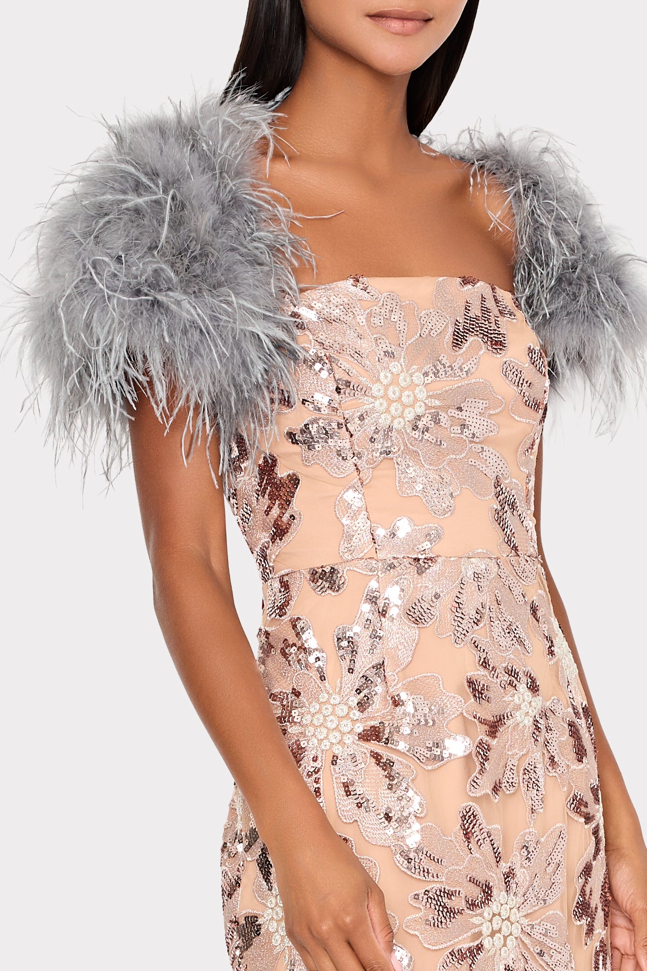 The perfect accent for any party look, our feather bolero is bursting with single strands of feathers that create cap sleeves. It has an open front to showcase whichever top or dress you decide to pair it with.