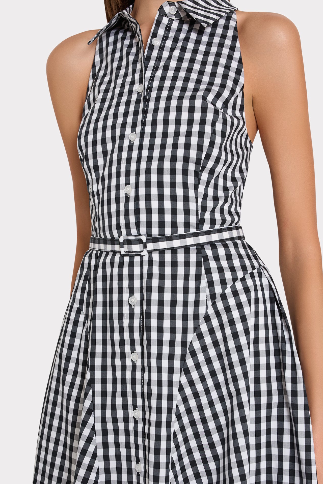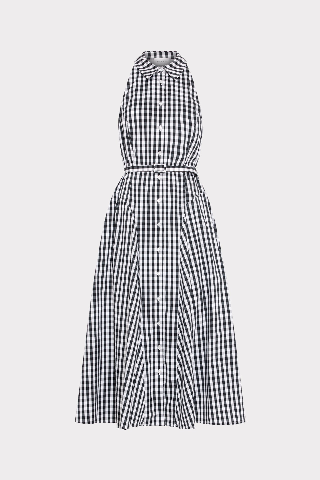 This dress begins with a modest, collared neckline, buttons down the front, and falls to a midi length. It's accented with a removable belt at the waist. Style it with flats during the day or pair it with heels for work and dinners out on a warm night.