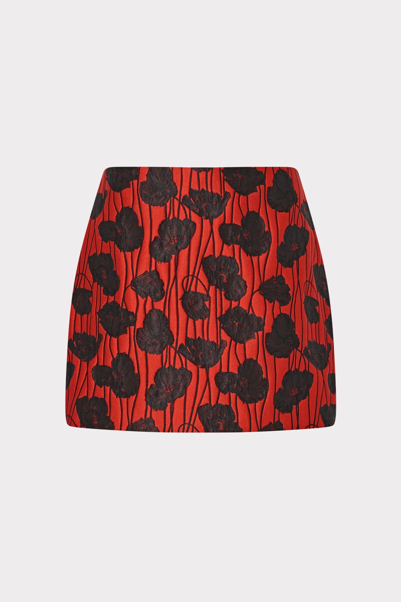 Cut from luxurious “poppy” print jacquard, this mini skirt is a festive take on a recurring staple. This black and red mini is made to coordinate with our Ruthe Poppy Jacquard Short sleeve top. It’s fun and cozy for a winter night.