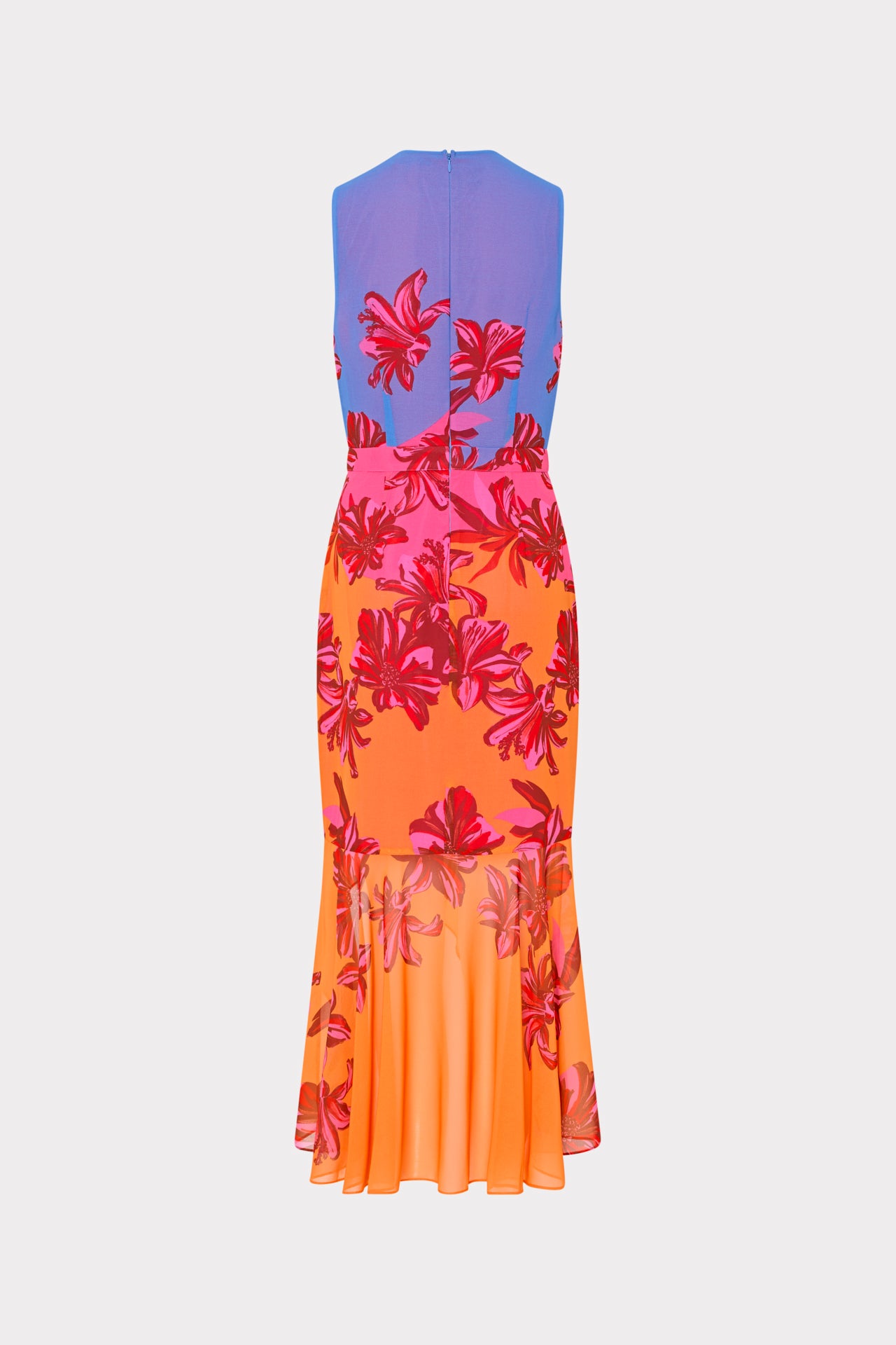 The Nanci is a sultry, ruffly number with an asymmetrical hemline that falls to a midi length. For Resort, it's offered in a bright, vacation-ready floral print. Style yours with a fun heel and matching clutch.