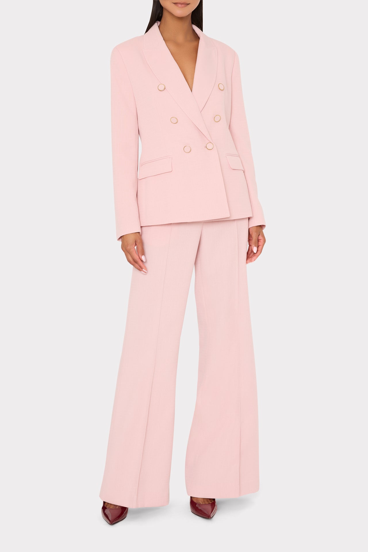 A classic double-breasted cut combines timeless tailoring with MILLY’s modern edge. It’s cut from a light poly blend with a hint of stretch, is accented with peak lapels, and is finished with a row of buttons on each sleeve. Keep it casual with jeans or wear it as a full suit with its coordinating Orma pant.