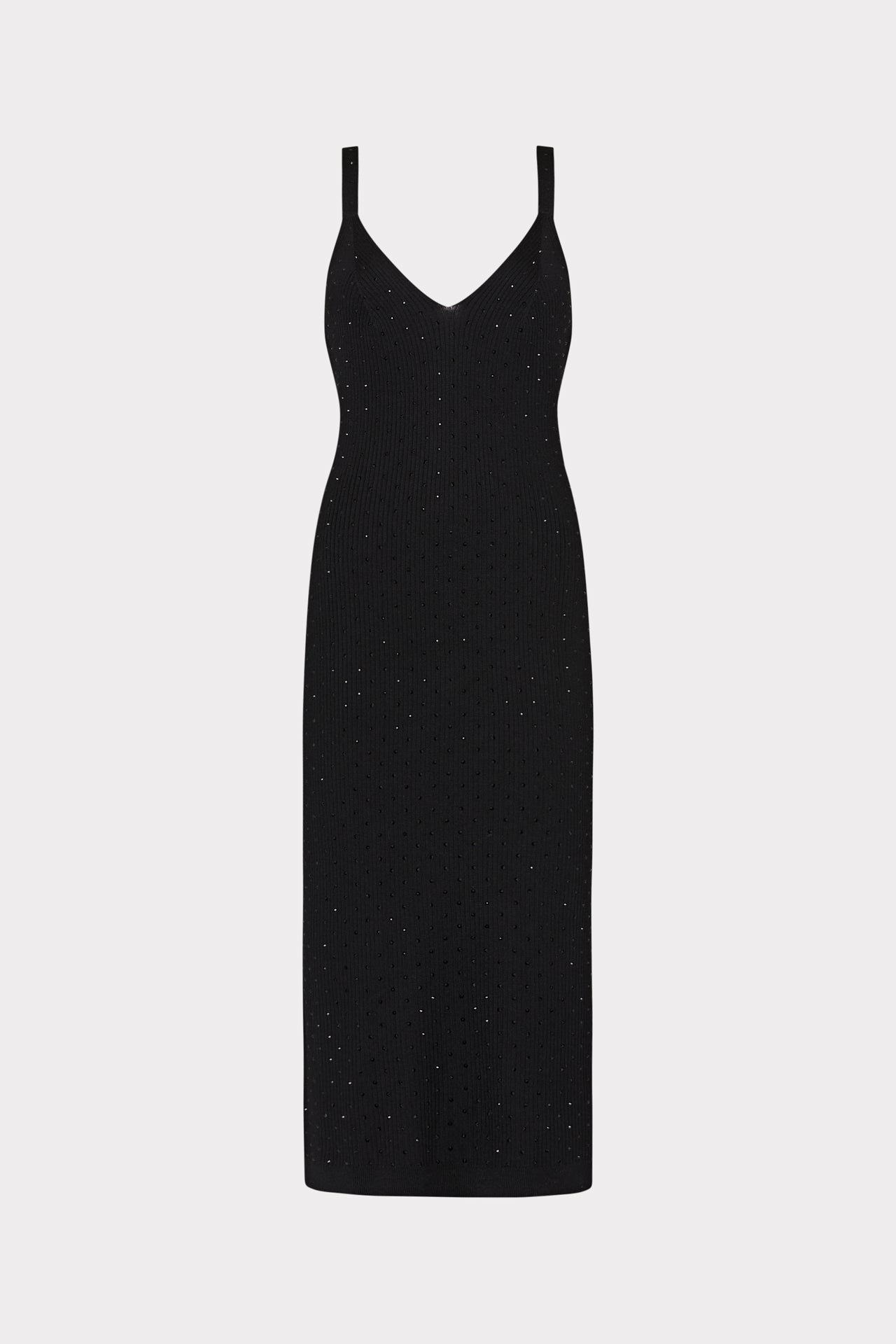 A sleek update to the classic LBD, this knit midi dress sparkles with subtle crystal embellishments. Designed with a flattering ribbed texture and slim straps, it’s effortlessly elegant from dinner to evening out.