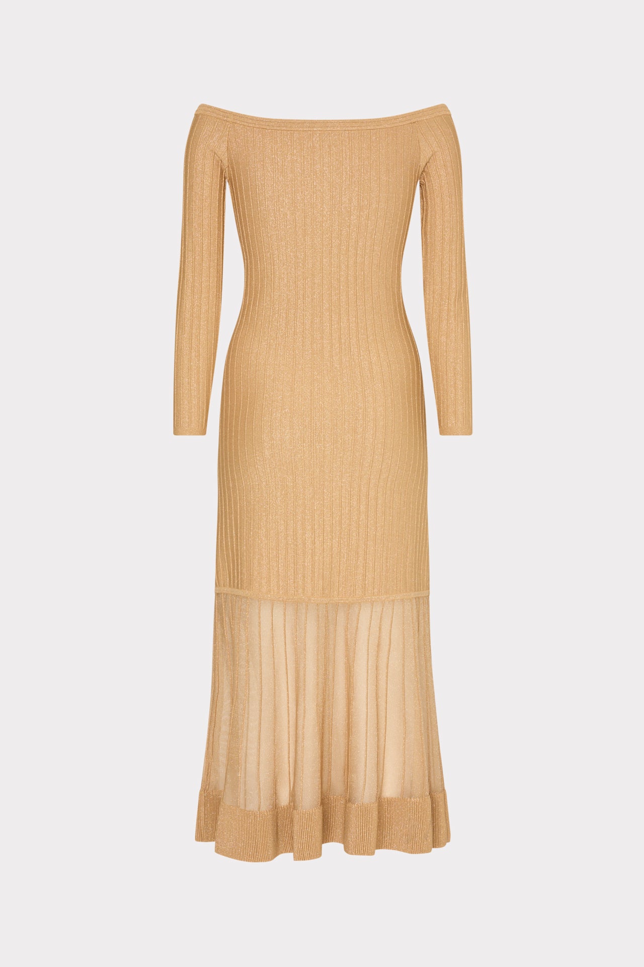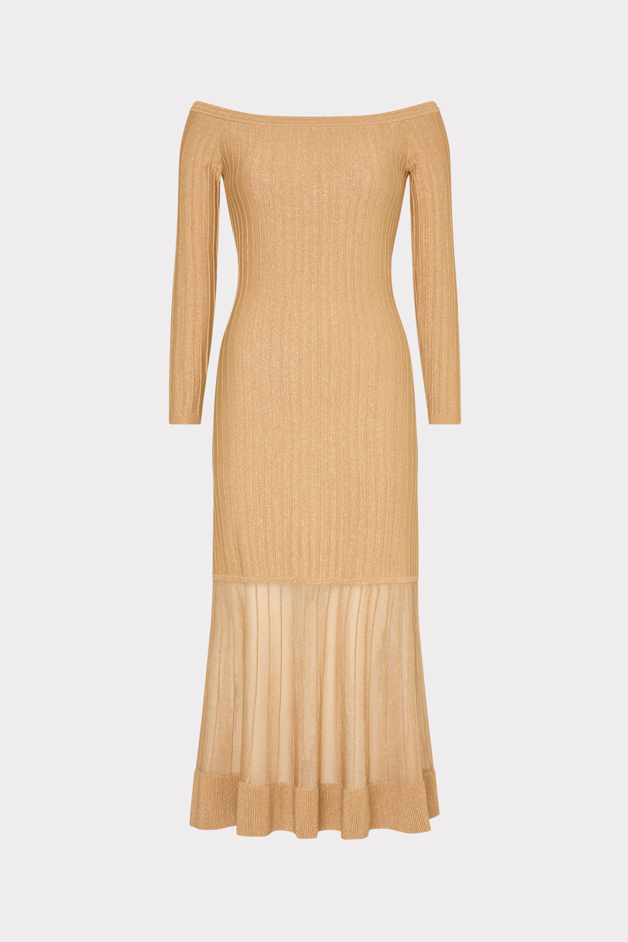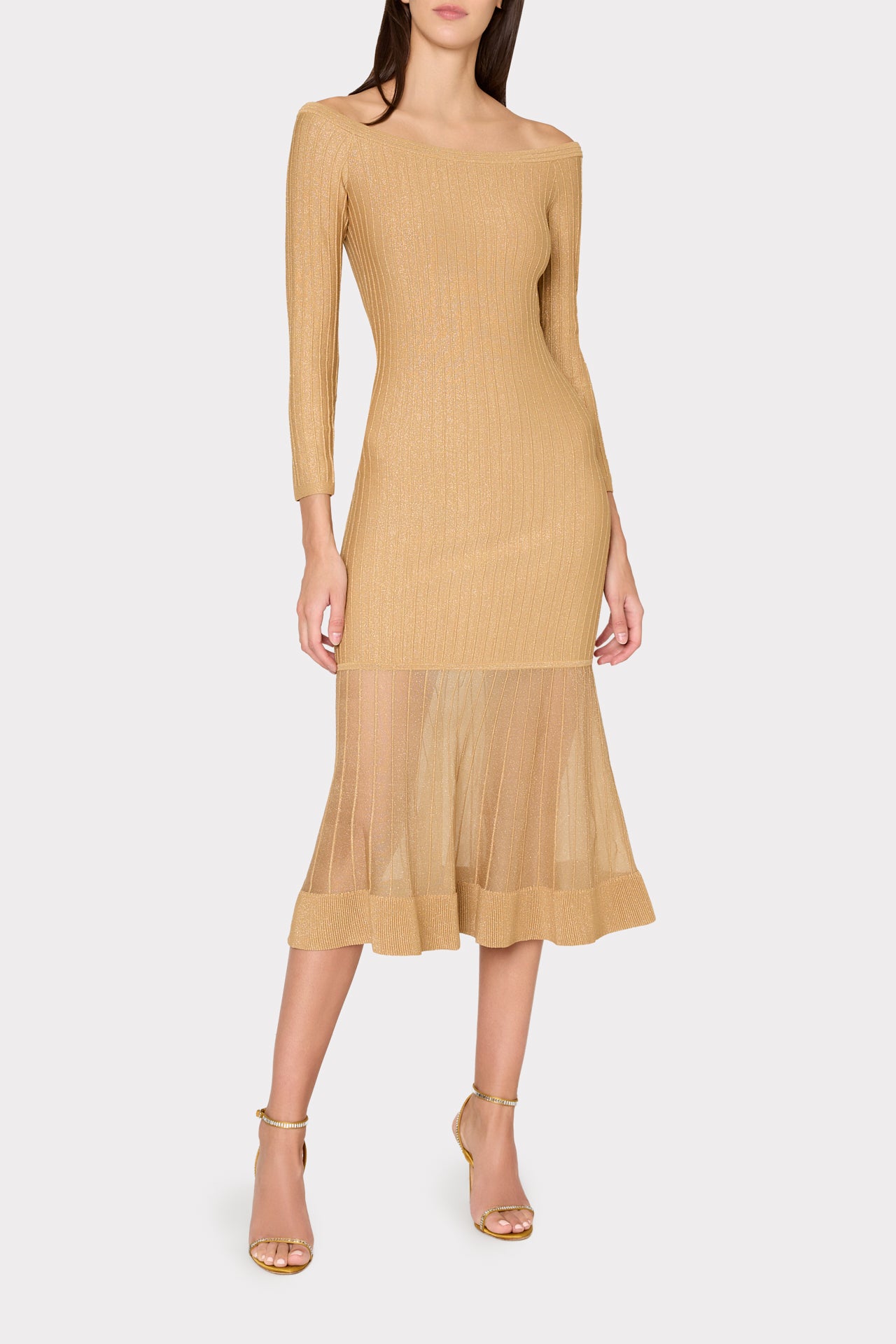 Rudy Off The Shoulder Sheer Knit Midi Dress