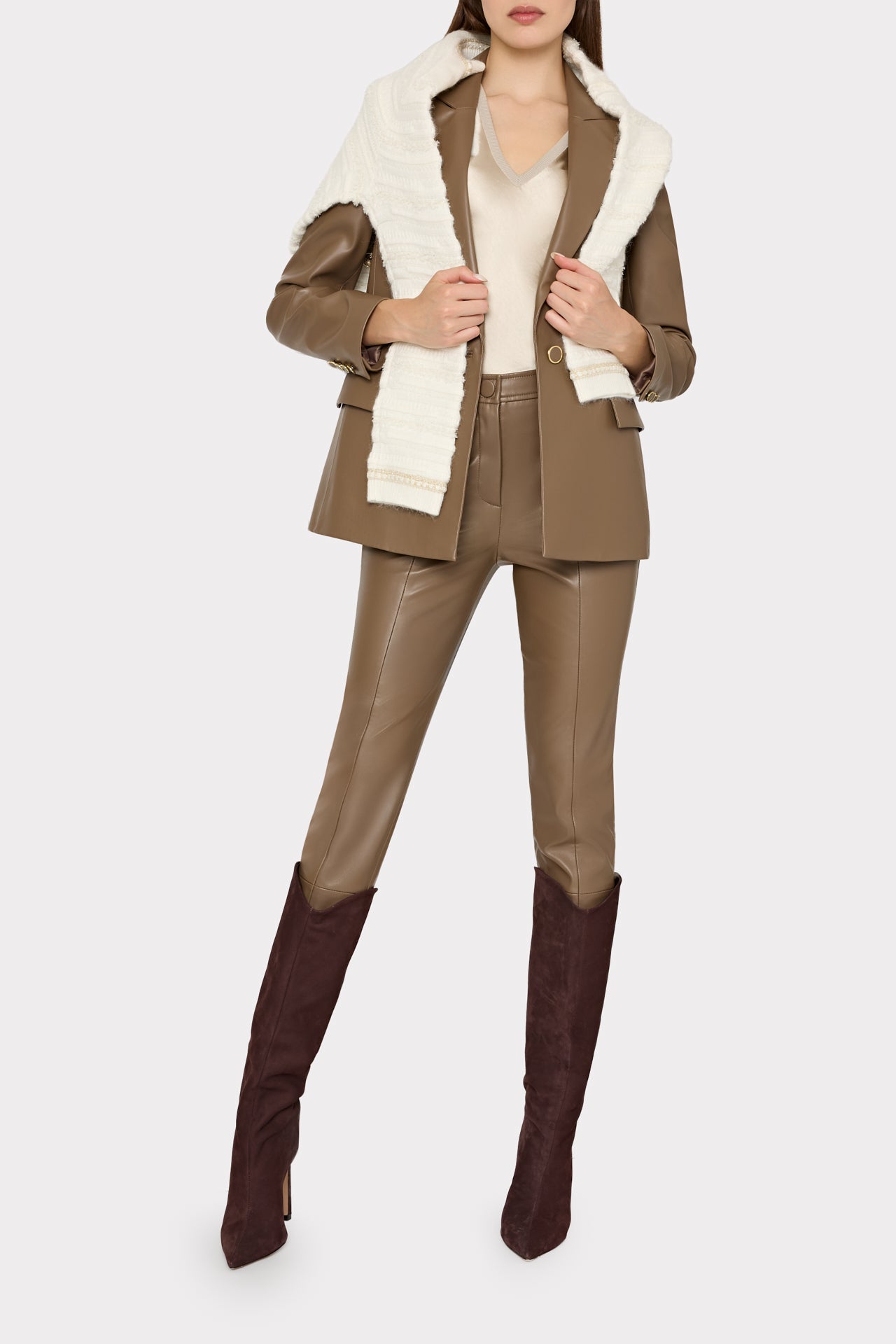 Our cult-favorite pant is cut from rich, buttery goes-with-anything faux leather that feels just like the real thing. The Rue is designed with a  high-waist and a straight leg. The coolest way to wear them is with heeled ankle boots.
