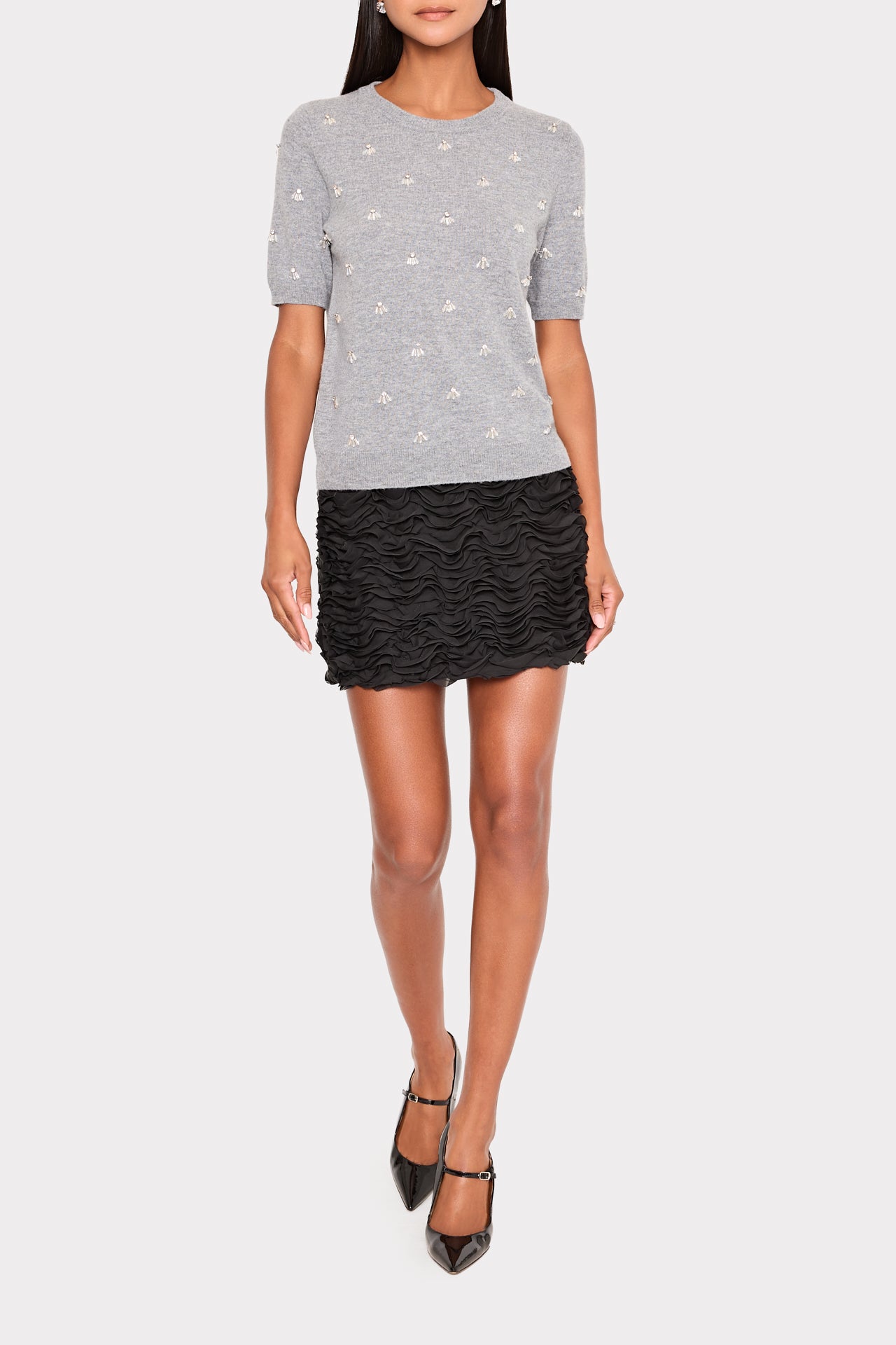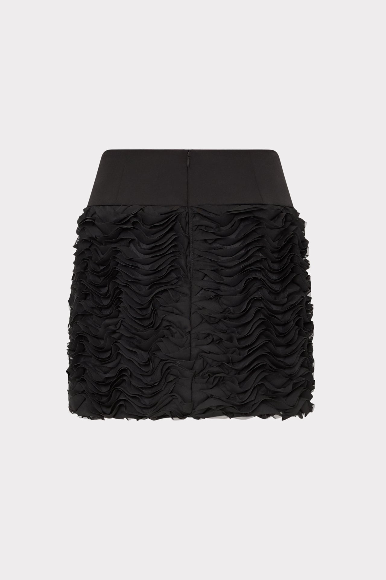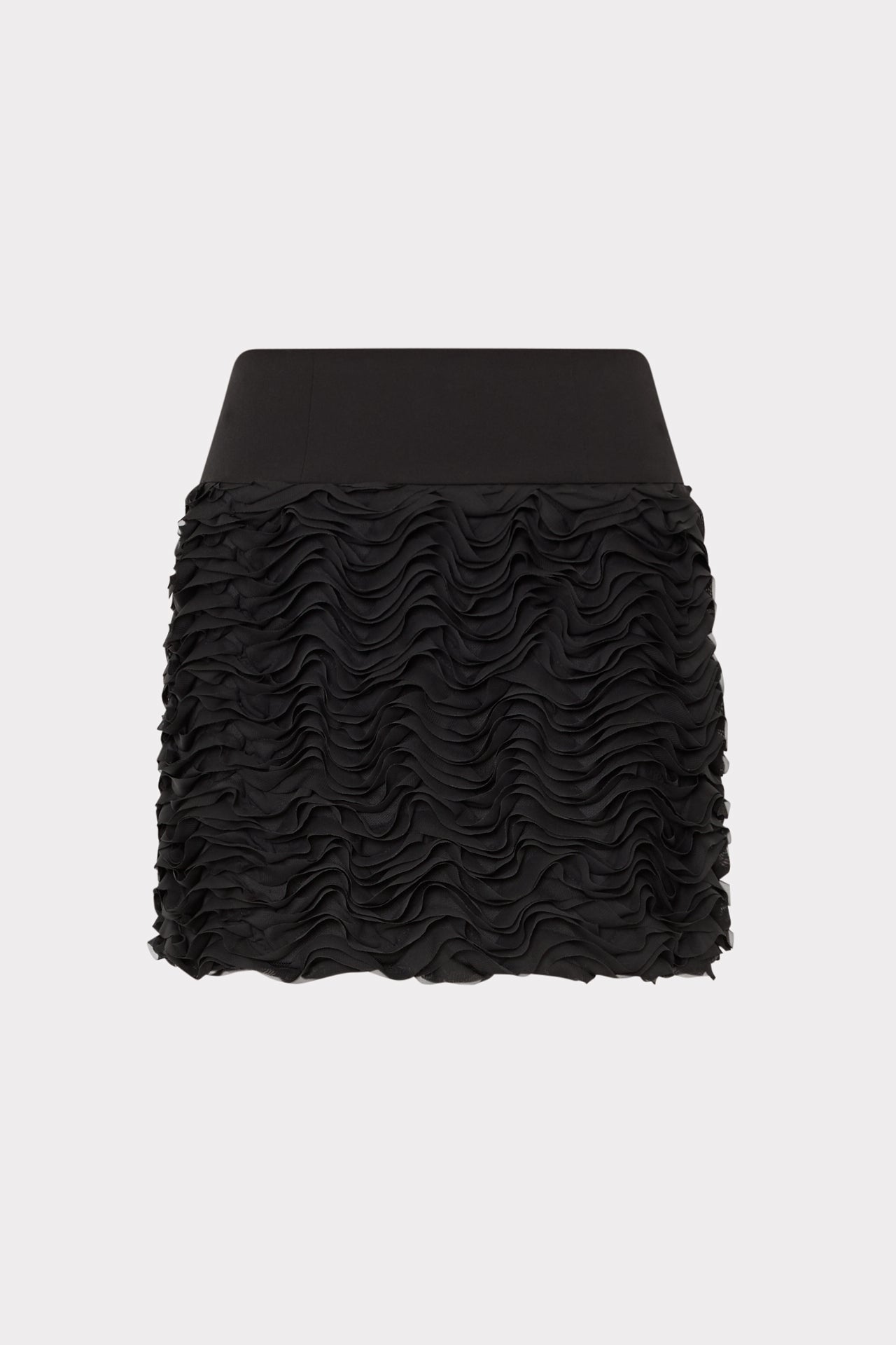 Designed with a wide waistband and ruffles throughout, this mini skirt was made to party. Wear it with your favorite MILLY skirt and blouse.