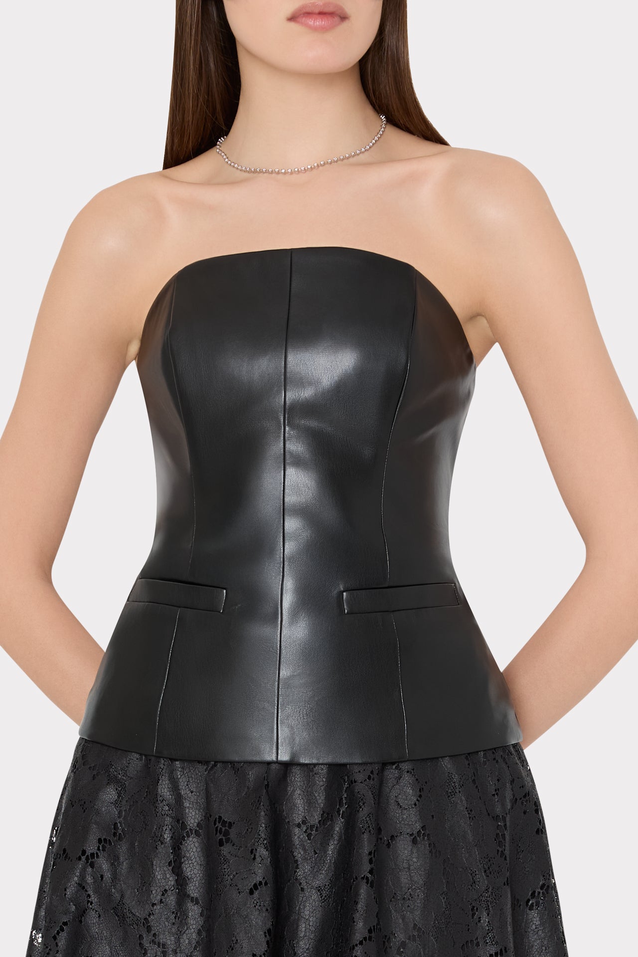 Cut from our buttery soft vegan leather that feels like the real thing, this strapless bustier top is constructed with flattering vertical seams and is finished with faux pocket details. For the full look, wear it with your favorite MILLY faux leather skirt or pant.